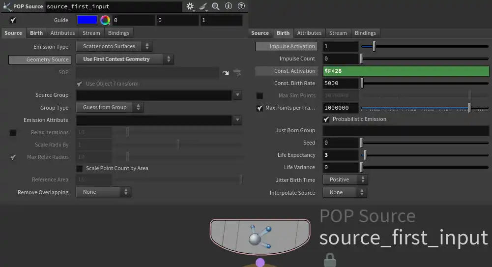 散射到表面:从几何体表面发射 - Birth | 生成: - Const. Activation |