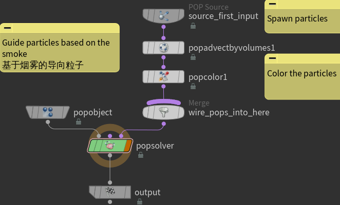 通过流体模拟的结果驱动 POP 粒子,会修改 force 、