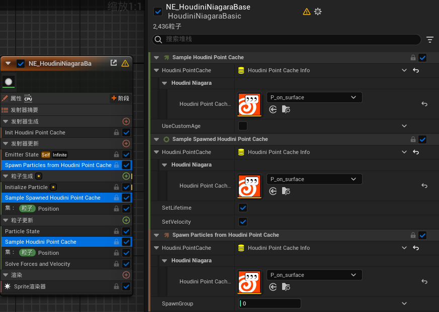 此时可以看到 Niagara 中的粒子按照 Houdini 模拟粒子结果移动:
